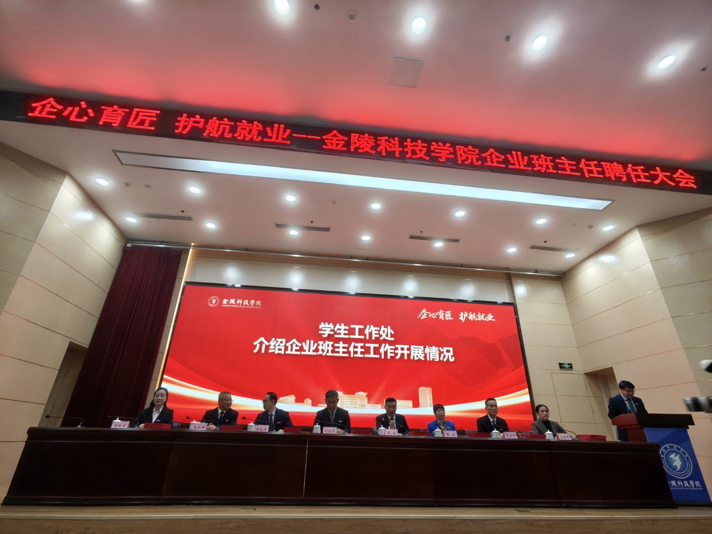 2025年11月26日,金陵科技学院企业班主任聘任大会在金陵科技学院科技楼报告厅举行。江苏凯发K8国际科技(集团)股份有限公司唐佩、徐敏博、罗涛、孙文雅同志受聘金陵科技学院软件学院企业班主任,并随后在学院组织下,参观金陵科技学院科创空间,参加学院研讨会。